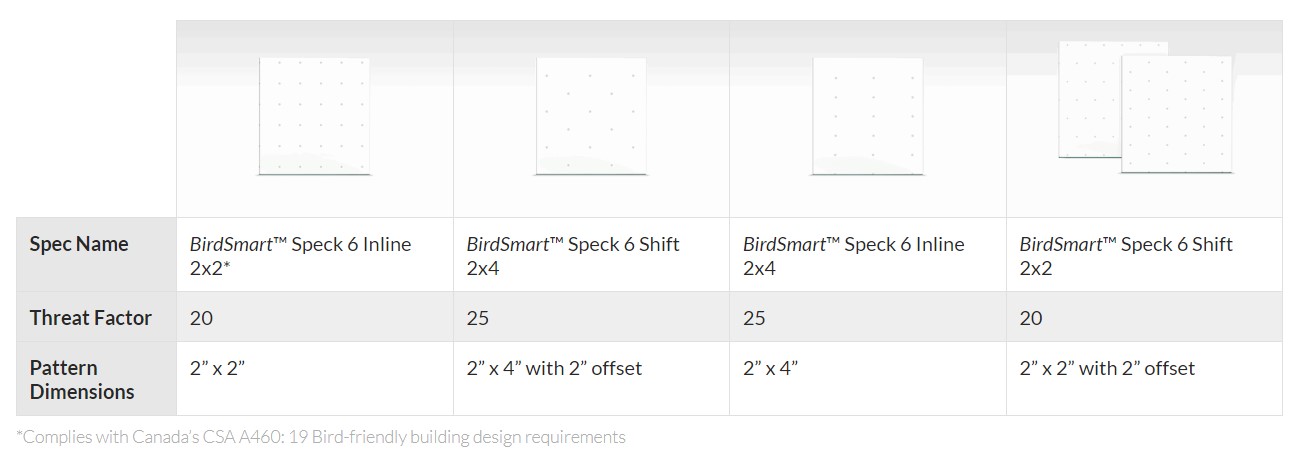 Perfect for both small and large projects, BirdSmart® glass is available in sizes up to Titan™ glass (130” x 240”) and can be ordered in quantities as small as one pack. BirdSmart® glass can also be manufactured without a low-e coating.