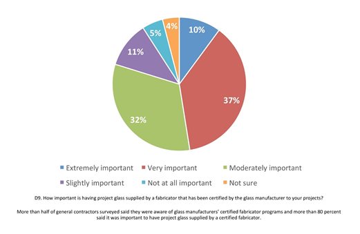 - Using glass supplied by a fabricator that is certified by a glass manufacturer is considered “extremely important” or “very important” by a sizable percentage of respondents.