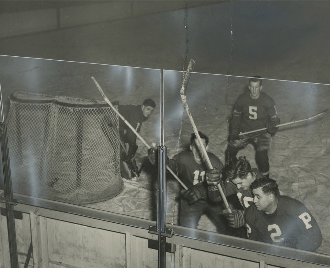 In 1940, a stronger barrier came into play when the Duquesne Gardens in Pittsburgh became the first hockey rink to use glass above the dasher boards—leveraging the shatter-resistance of Herculite® heat-tempered glass, the world’s first safety glass made locally by PPG Industries (now Vitro Architectural Glass).