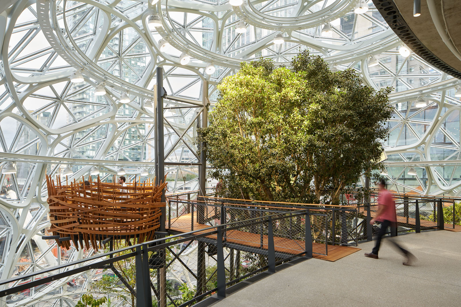 The Spheres, Amazon’s glass-domed headquarters in downtown Seattle, was constructed with Solarban® 60 and Starphire Ultra-Clear® glasses by Vitro Architectural Glass. The Spheres features five floors of meeting, relaxation and collaborative space, and contains terraces, a waterfall, river features and a forest garden consisting of more than 40,000 plants. (Photography: Bruce Damonte)