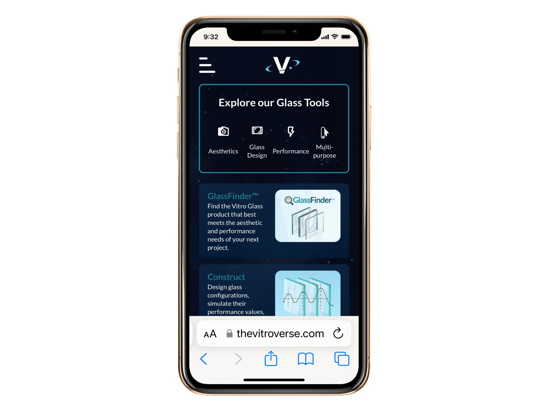 The VitroVerse® interactive mobile experience houses dynamic digital tools like Vitro GlassFinder™, the emissions™ Carbon & Energy Calculator, VitroSphere® Digital Glass Simulator and more.