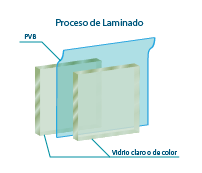 Gracias a la capa de PVB que se encuentra en medio de las dos láminas de vidrio, si llega a existir alguna fractura, los fragmentos quedarían pegados al PBV, evitando que caigan y lastimen a alguien.