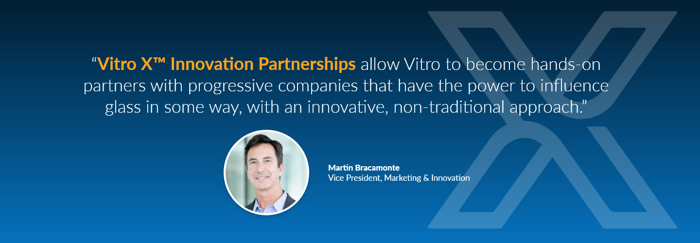 As an incubator for innovation, Vitro X™ Innovation Partnerships program enables Vitro to collaborate with future-focused companies as an early investor to support their work and shepherd their groundbreaking ideas including new functionalities and services for building owners and homeowners, from the drawing board to the production line, installation, maintenance and beyond.